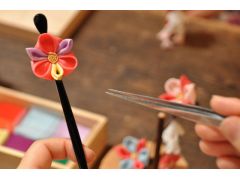 京都つまみ細工体験レッスン 生まれてくるお子様に 手作り ヘアアクセサリー つまみ細工 花のかんざし